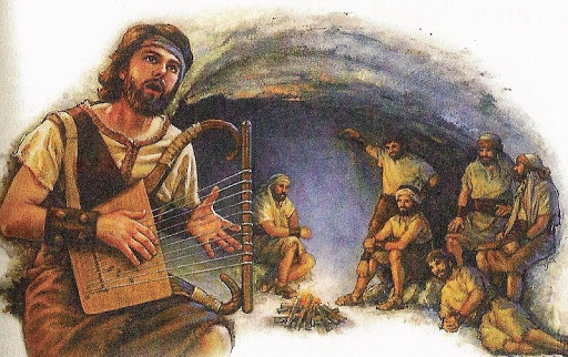 - David remains on the run as he flees Saul, but today’s readings in our One Story program only carries us a single verse further forward in that particular story-line. Where did David go and hide? Who was with him? Why do you think these people joined David?